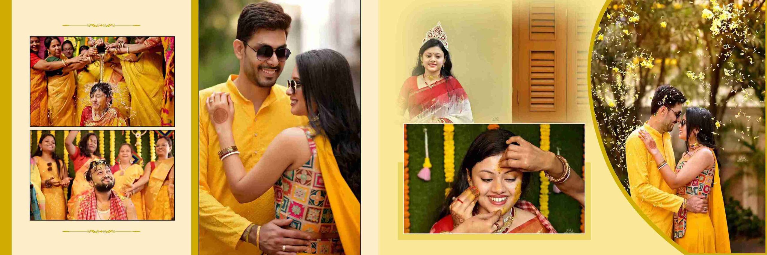 Haldi PSD files are pre-designed templates used for creating 12×36 wedding album layouts during the Haldi ceremony – a colorful, traditional pre-wedding ritual in Indian culture. These PSDs help save time while maintaining professional, eye-catching design quality.
